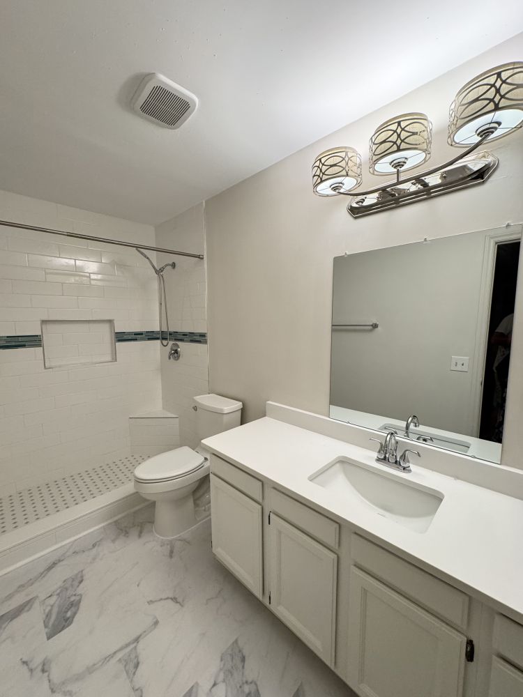 - Over-sized Bathrooms with Granite Vanities and Subway Tile Baths